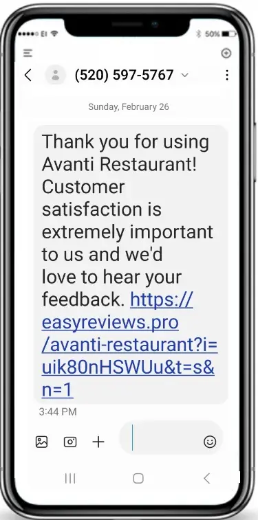 These are text message invitations for customer to leave you reviews. They will be directed to the intelligent star routing where once again 3 star or less goes to your email for you to filter, 4 or 5 star reviews will be sent straight to Google or your review site of choice.